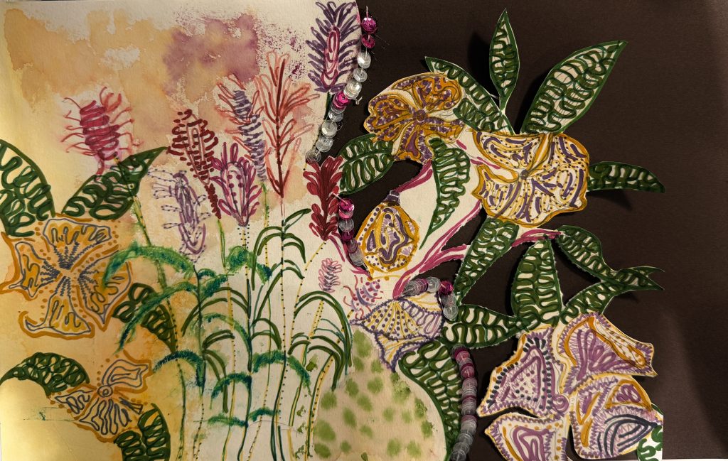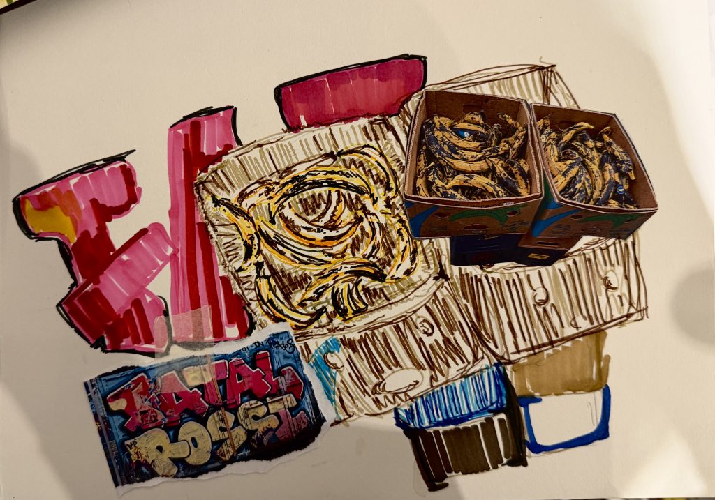 In this section,we are telling to present our drawings in colors and patterns. So in the past few days our class vist the horniman museum and our group visit the London field. In London field we visit a market and i took some photos from the people and stuff i feel interested. On top of that i tried to do some drawings with colors and mark making, combining the things i have observed. The second place our class visit is horniman museum, I saw some very lifelike animal specimens and photos of sea creatures. In the museum garden I tried to do some observation drawings with the flowers I saw. In my spare time, I went to watch an opera performance. I was attracted by the design of the building, so I also drew some pictures of the opera house as I saw it.